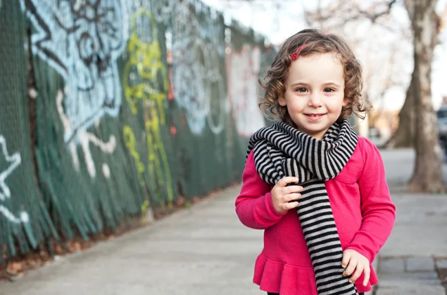 The sun begins to set. I could be home washing dishes or putting my own kid to bed. But instead, I head out to the edge of Brooklyn to run around the warehouse and graffiti lined streets with this little sass-ma-frass. Who, of course, takes to her surroundings with stylish verve. Love working with you, doll. Let's do lunch.