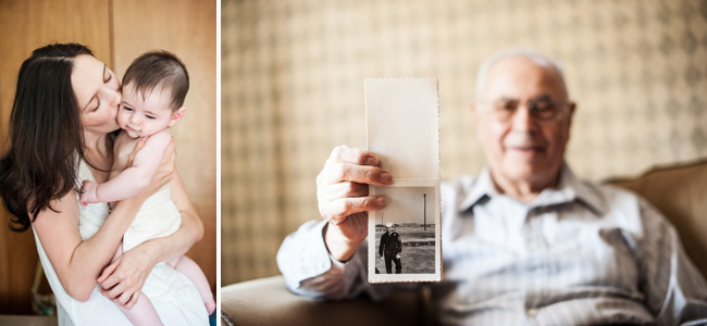 We were at the grandparents' house in Queens. Mom and Dad and their little boy were visiting from out of town. Lucky me, these thoughtful folks decided to hire a photographer to capture some everyday, special moments. I ate homemade eggs with challah. I was shown old photos of a handsome man in uniform. They made me feel like family the minute I walked in. I could have stayed with them all day.